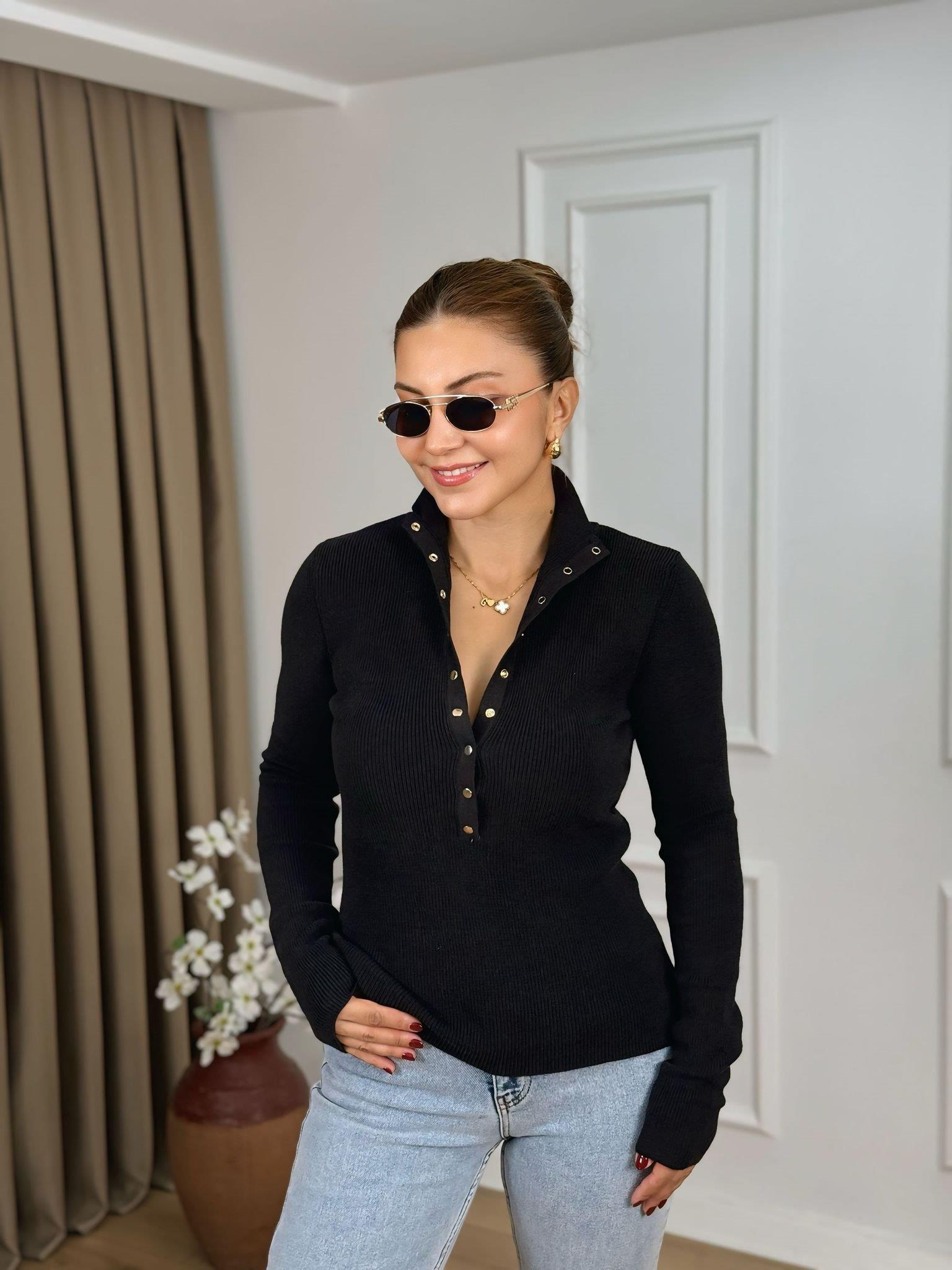 Acı Kahve Dik Yaka Çıtçıt Düğmeli Triko Kazak 1037 (P-00000009078)
