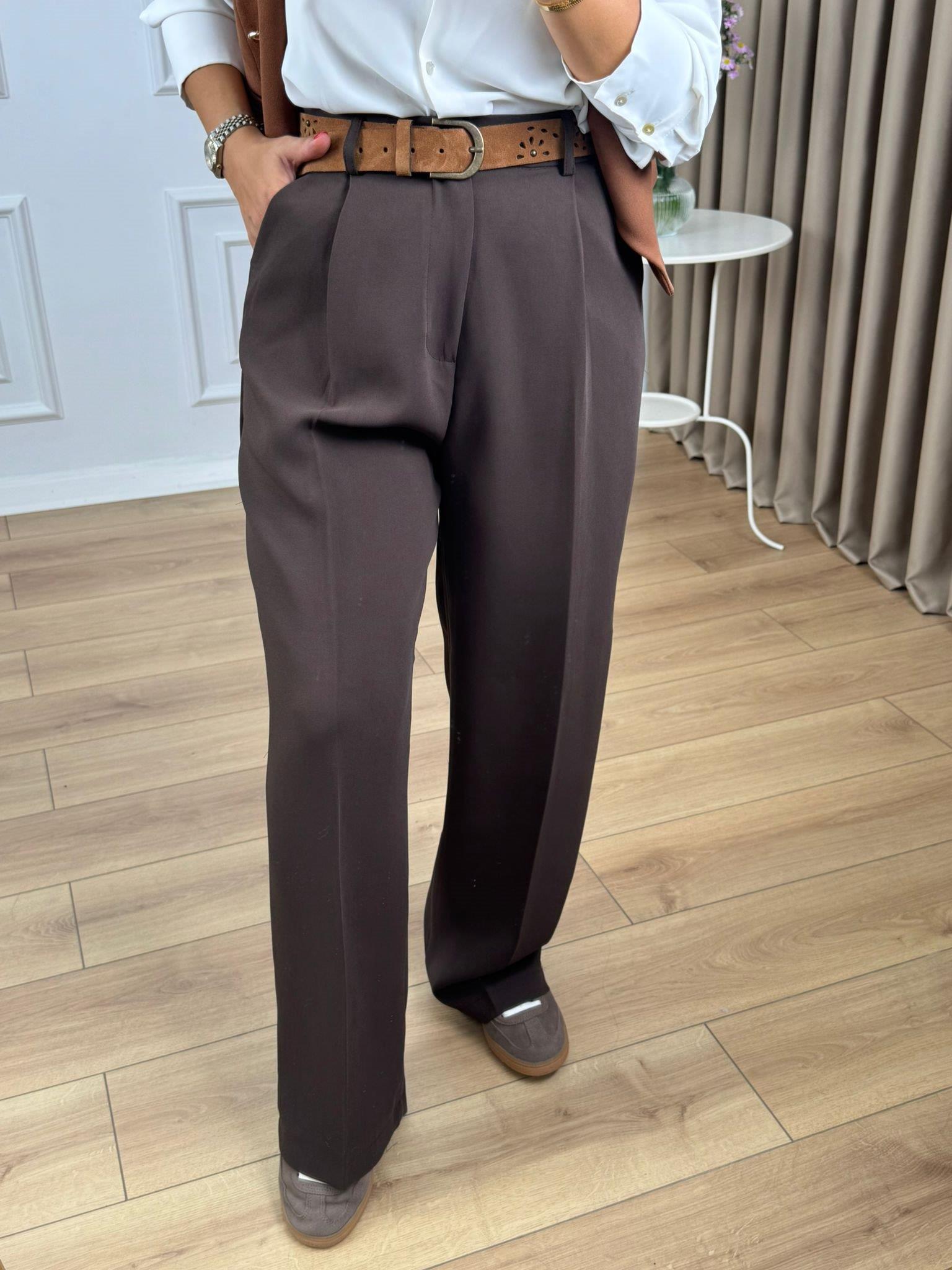 Acı Kahve Yüksek Bel Pileli Palazzo Pantolon 51024 (P-00000008662)