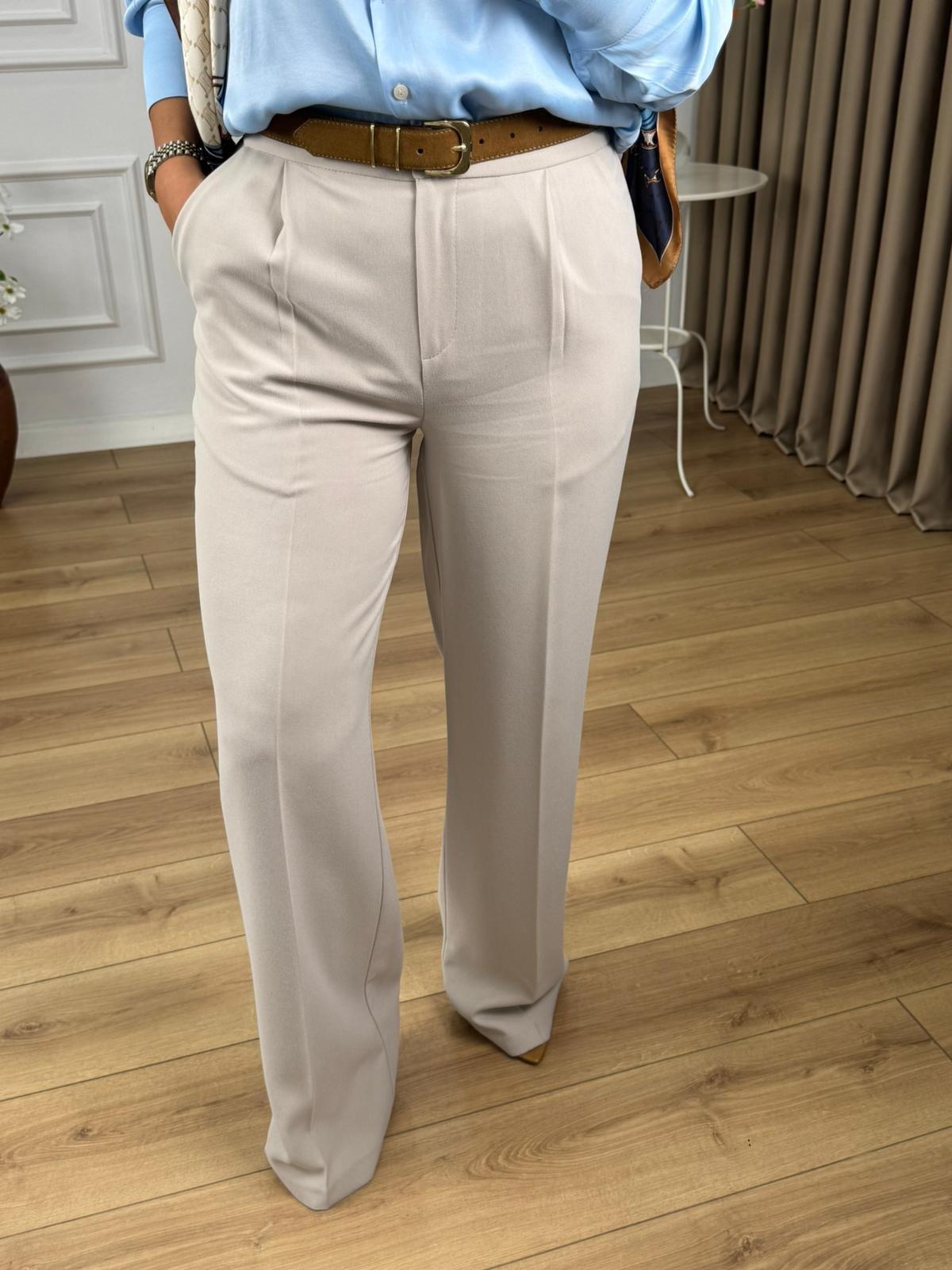 Bej Yüksek Bel Düğmeli Palazzo Pantolon 6406 (P-00000009093)
