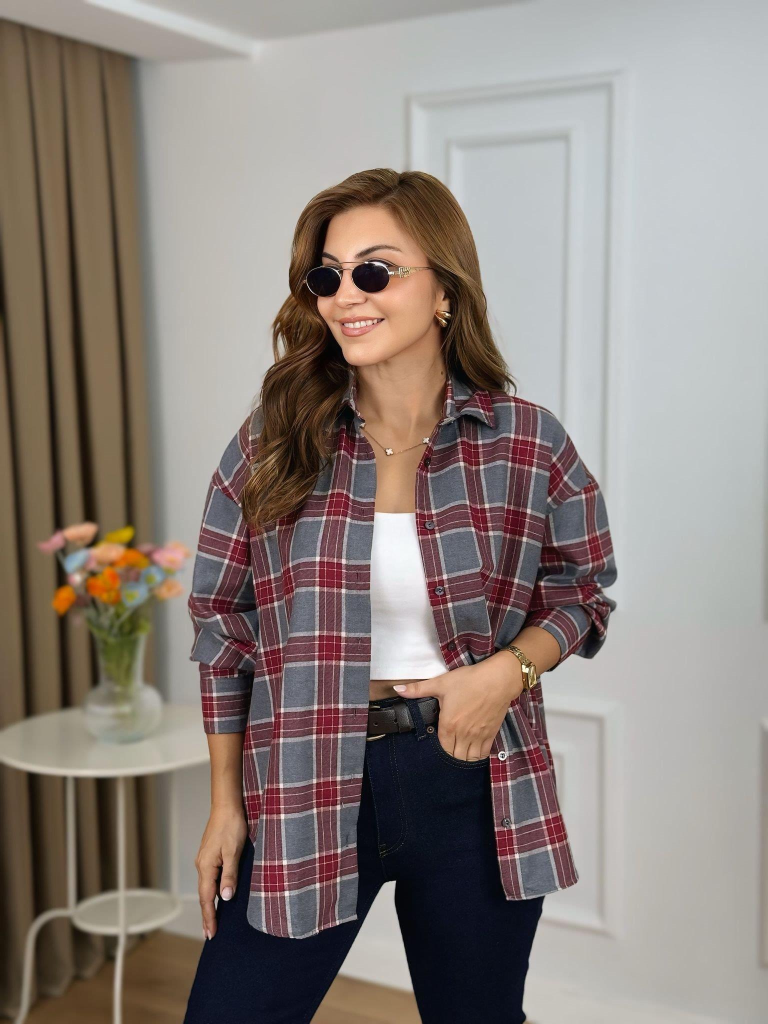 Bordo Düğmeli Ekose Desenli Gömlek 2227 (P-00000009165)