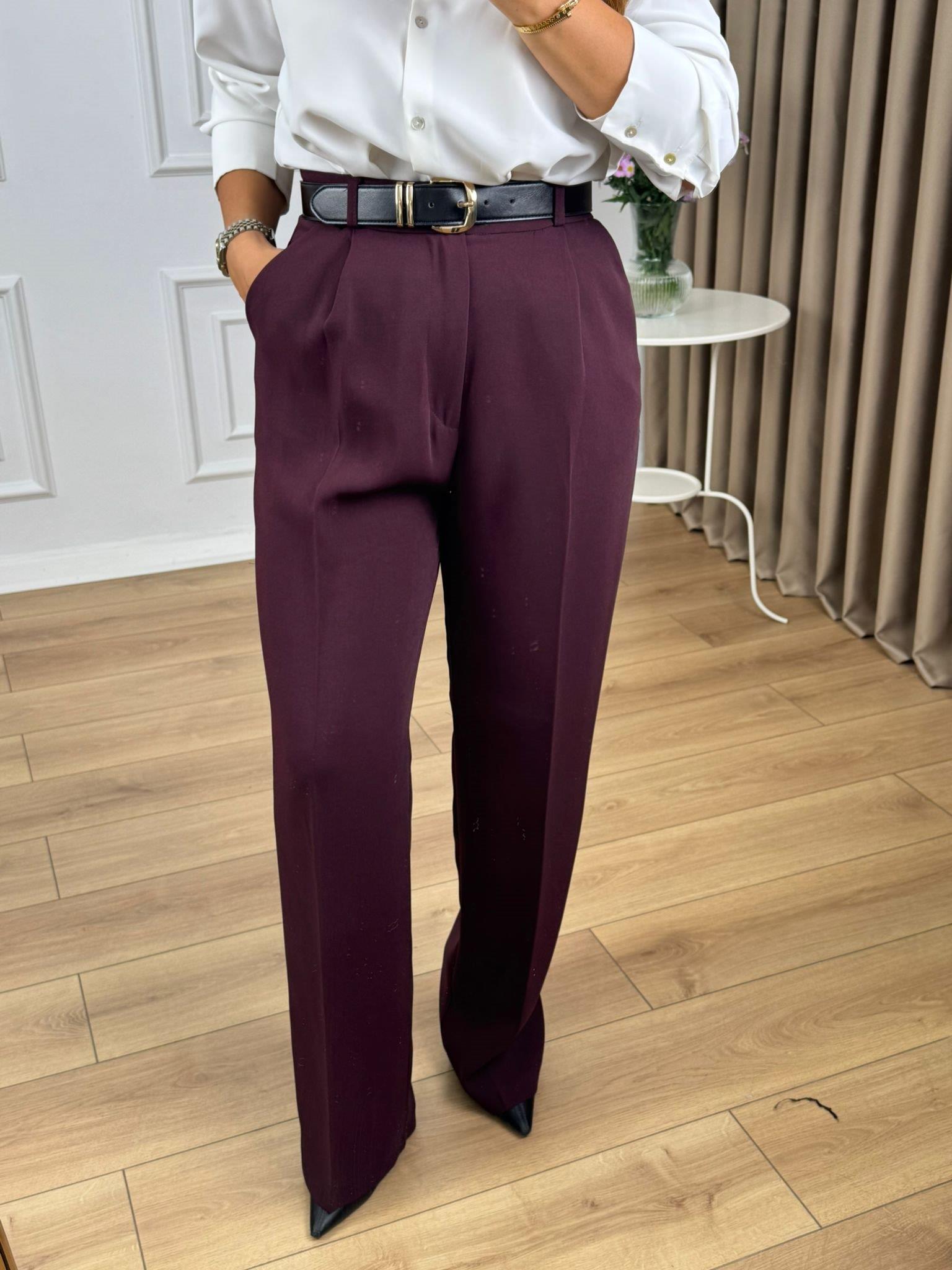 Bordo Yüksek Bel Pileli Palazzo Pantolon 51024 (P-00000008662)