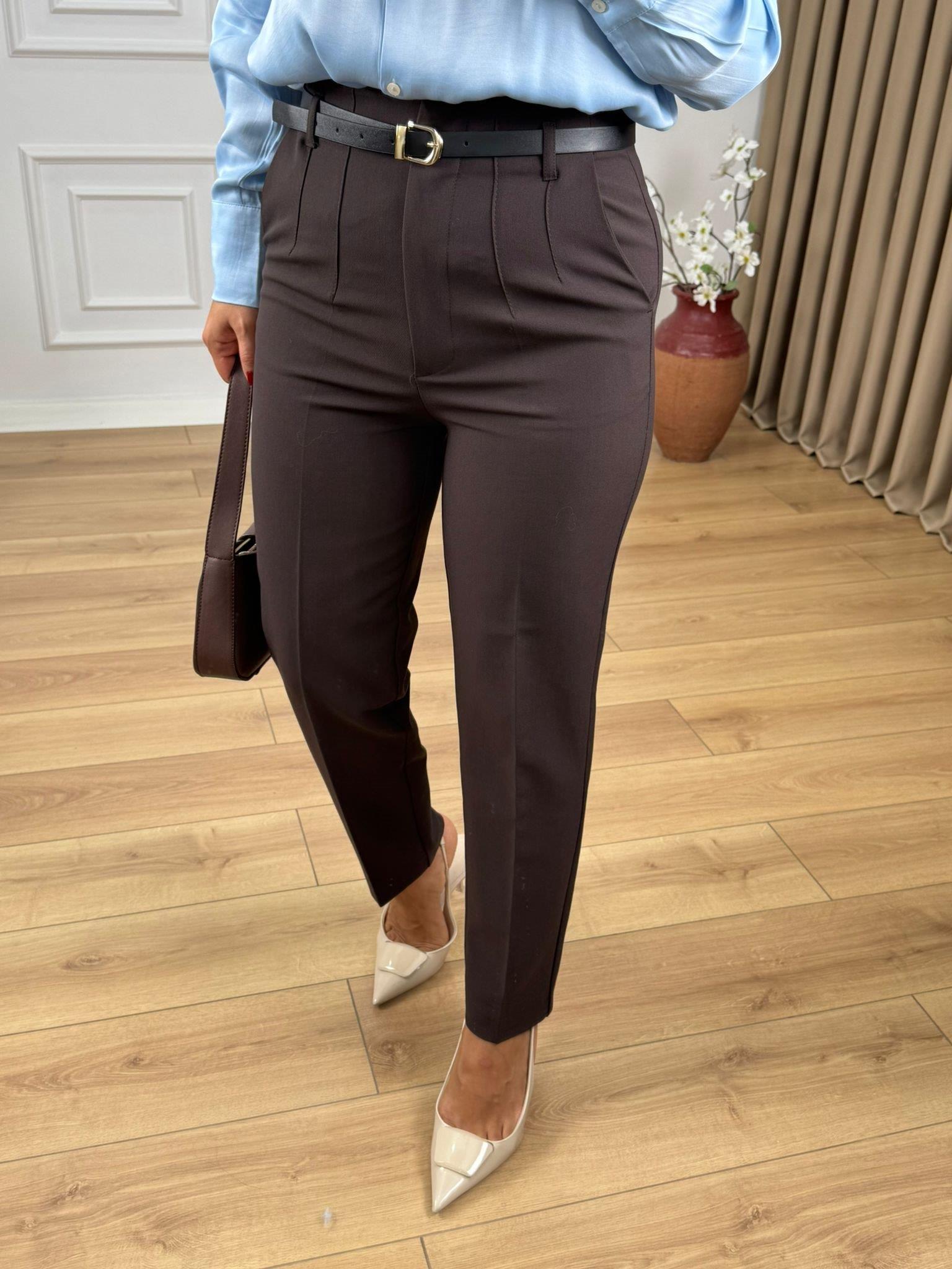 Kahve Yüksek Bel Kemerli Flatolu Pantolon 16546 (P-00000009071)