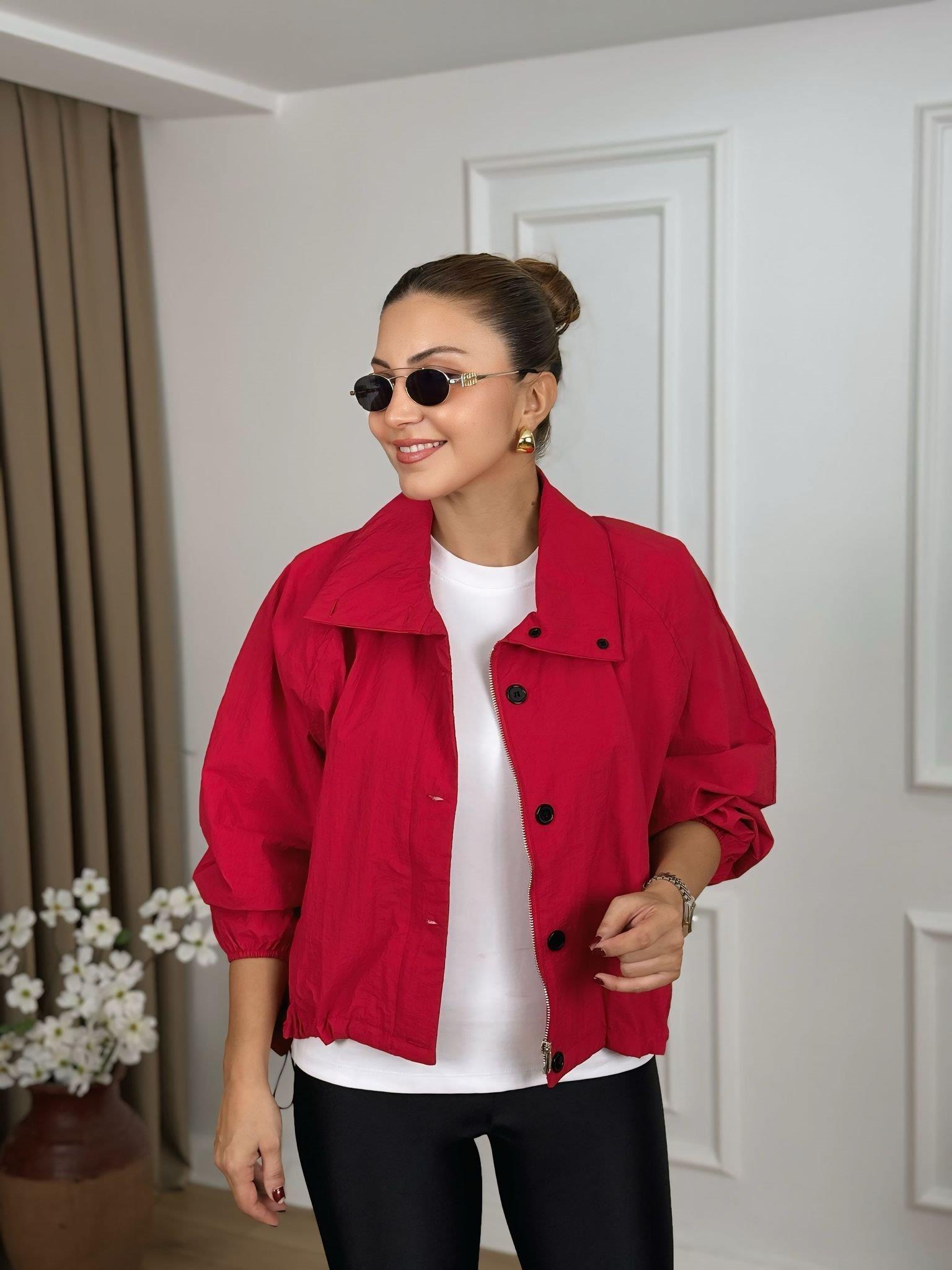 Kırmızı Dik Yaka Fermuarlı Rüzgarlık 30721