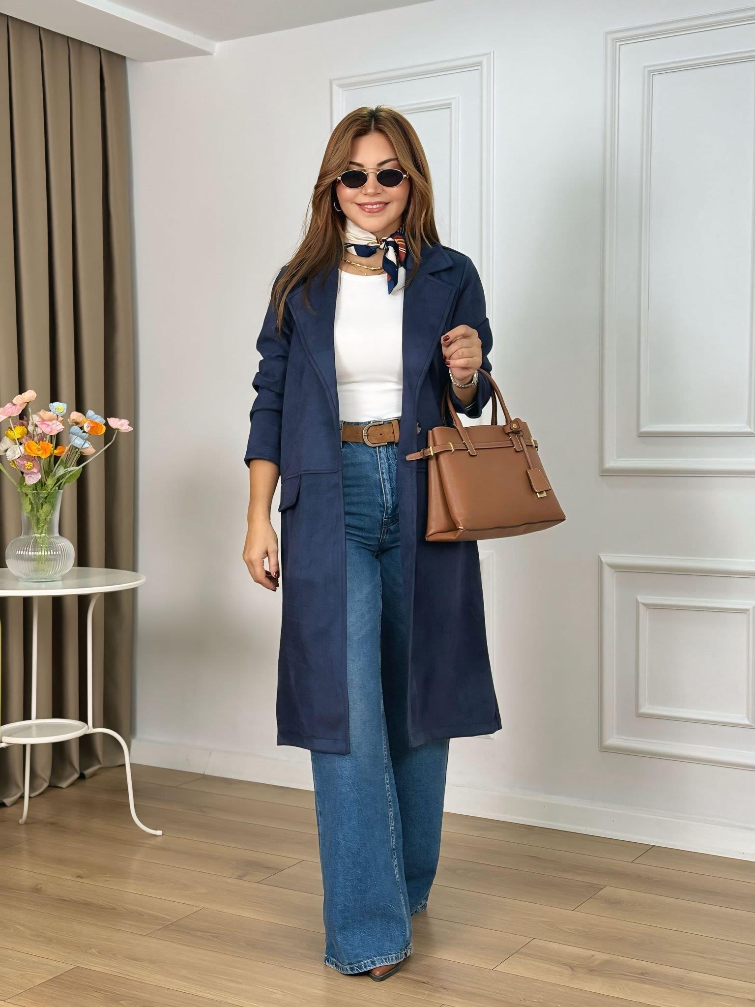 Lacivert Düğmeli Süet Trenchcoat 24044 (P-00000009083)